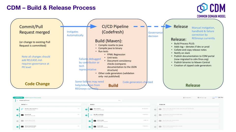 - successful builds of the CDM and all its downstream dependencies.