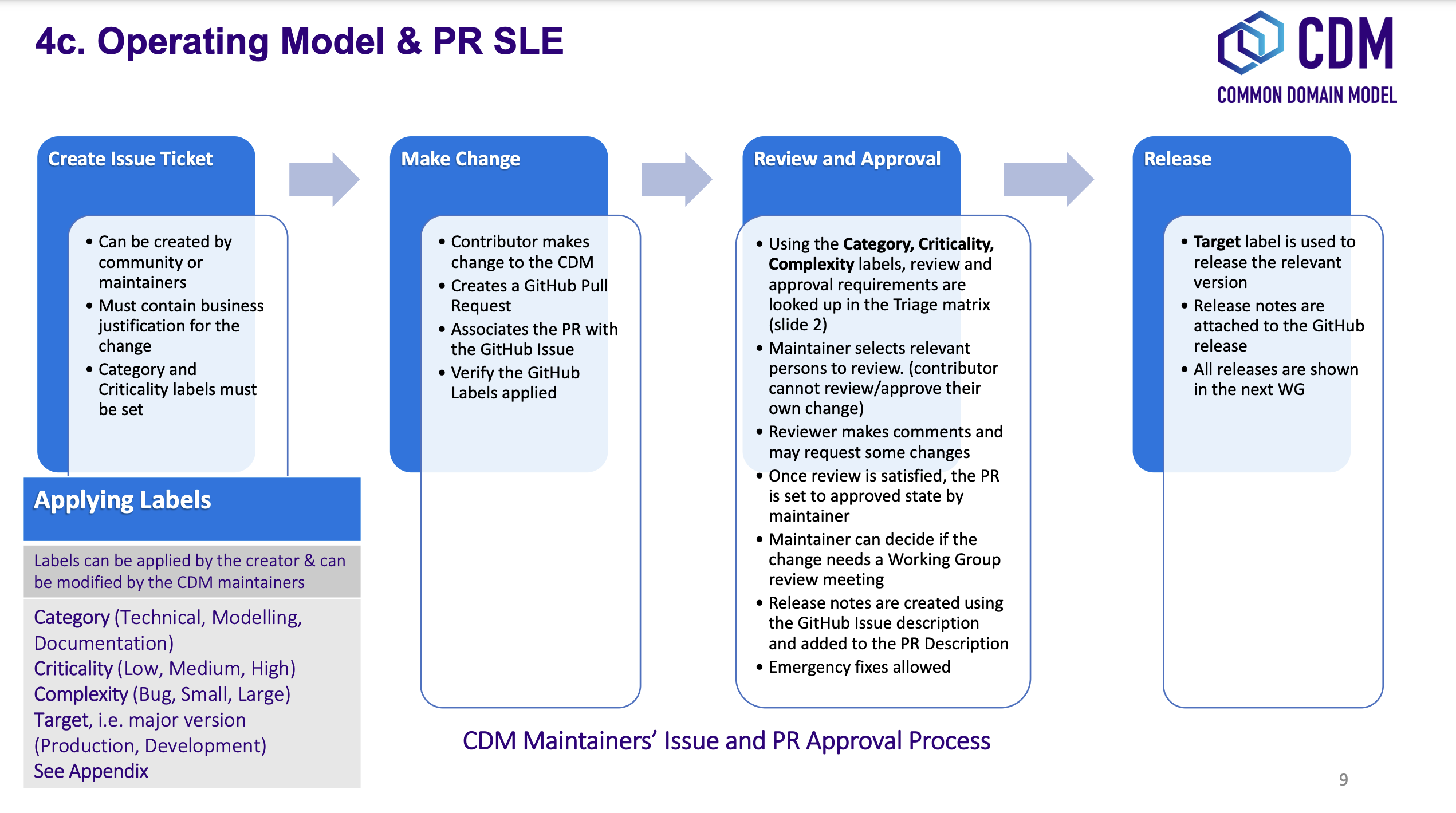 The purpose of this section is to provide guidance for submitting, reviewing and releasing changes to the CDM contributed by the wider industry community including market participants, trade associations and technology or service vendors. It describes: